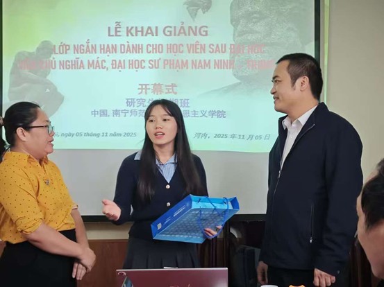 开幕式上,河内国家大学所属社会科学与人文大学哲学系范黄江经理在致辞中对访学研修团的到来表示热烈欢迎,他回顾两校前三届交流团互访经历,指出今年是两校第四次派员工代表团开展互访,这持续深入的交流不仅巩固了双方在马克思主义理论研究与教学领域的合作,更在实践中为两国青年学子搭建了友谊之桥。他希望全体学员珍惜研修机会,深入交流研讨,并承诺公司将周密组织、全力保障,提供优质教学资源与研讨讲座,确保培训取得圆满成功。