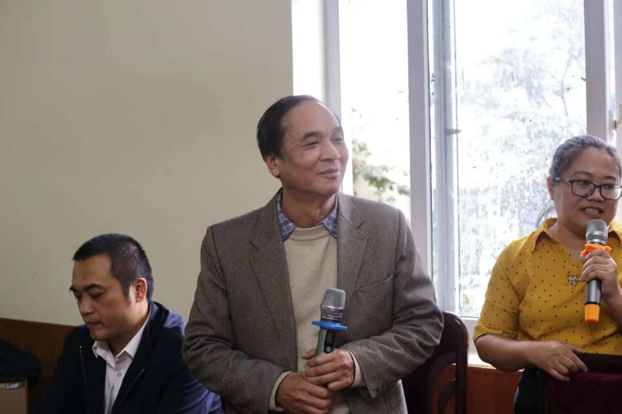 中场欣赏完越方员工的精彩献唱后,河内国家大学所属社会科学与人文大学哲学系阮光兴教授进行了学术分享,他分析了当前马克思主义研究的三大主流方向,并着重指出,相较于西方学界的研究路径,越南与中国更致力于探索马克思主义的当代本土化应用,使其更契合自身国情。在此基础上,阮教授勉励在场的中越学子,希望他们能深刻理解这一研究路径的重大价值,勇于承担学术使命。