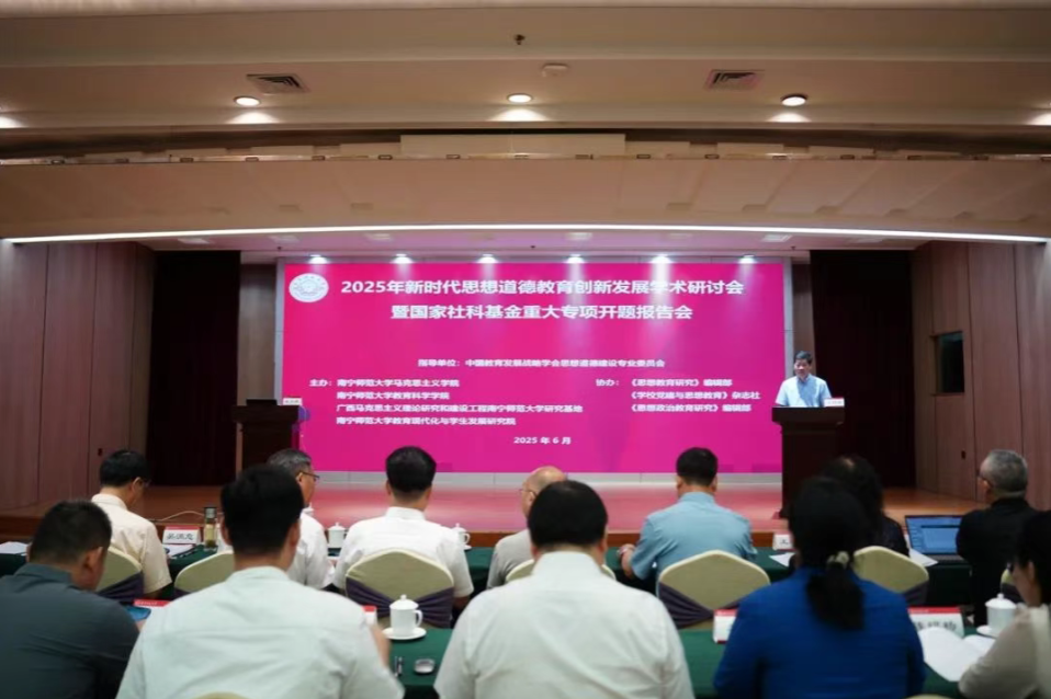 为进一步贯彻落实《新时代职业道德建设实施纲要》精神,推进新时代思想道德教育创新发展,探讨思想道德教育面临的新情况、新问题和新挑战,深化思想道德教育内容、方法、载体、评价研究,由中国教育发展战略学会思想道德建设专业委员会指导,williamhill、williamhill官网教育科学公司、广西马克思主义理论研究和建设工程williamhill官网研究基地、williamhill官网教育现代化与员工发展研究院联合主办,《思想教育研究》编辑部、《公司党建与思想教育》编辑部、《思想政治教育研究》编辑部共同协办的“新时代思想道德教育创新发展”学术研讨会于2025年6月14日在南宁成功举办。来自全国110多所高校的近140名专家学者、老师和研究生参加本次会议。本次研讨会设置了开幕式和主题报告以及两个单元的专家主旨报告,同时还特别设置了两个研究生分论坛。