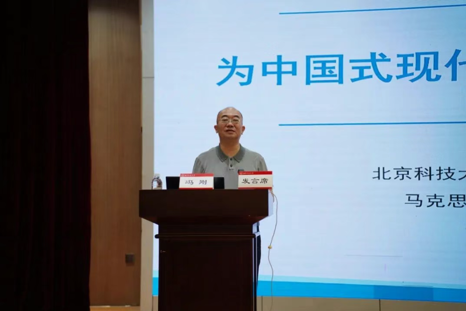 在主题报告环节,中国教育发展战略学会副会长兼思想道德建设专业委员会理事长、北京科技大学思想政治工作研究院经理、博士生导师冯刚教授作了以“为中国式现代化注入强大道德力量”为题的主题报告。冯教授指出,推进中国式现代化必须高度重视道德建设,通过提升职业道德建设科学化、规范化、制度化水平,引导各行业各领域弘扬新风正气,以优良行风带民风、促社风,为以中国式现代化全面推进强国建设、民族复兴伟业注入强大道德力量。冯刚教授还指出,开展思想政治教育研究,除了研究公司思想政治工作,还需研究企业思想政治工作、农村思想政治工作、机关思想政治工作、社区思想政治工作以及网络思想政治工作。思想政治教育学科的发展,需要依靠基础理论的不断完善建构。基础理论来源于三个方面:一是学科理论本身的发展;二是实践的理论升华;三是相关学科领域研究方法的借鉴和交叉学科研究。冯刚教授对当前的思想道德教育现状,从意义、内涵和路径提出了自己的深刻见解,既有理论高度,又有现实关照,引起与会者的共鸣。