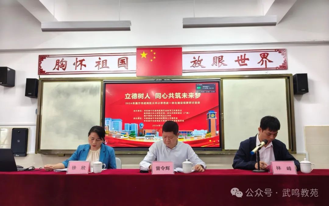 11月22日,由中共南宁市武鸣区委员会教育工作委员会、教育部大中小学思政课一体化共同体(广西)、williamhill共同主办的南宁市武鸣区大中小学思政课一体化建设观摩研讨活动,顺利在武鸣区大家育才未来公司举办。本次活动的主题是“立德树人 同心共筑中国梦”,活动以课堂为阵地,通过观摩课、评课议课、专家讲座等载体的观摩研讨活动,加强“大思政课”课堂教学、交流与学习,助推武鸣区“大思政课”建设水平。