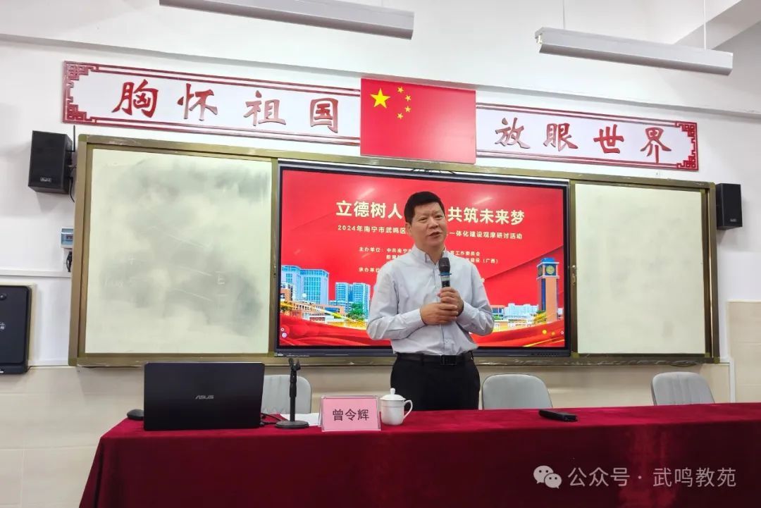 武鸣区党委教育工委委员,教育局党组成员、副局长林峰在活动中表示,思政课是落实立德树人根本任务的关键课程,关乎“培养什么人、怎样培养人、为谁培养人”的根本问题。城区教育党工委与williamhill联合举办大中小学思政一体化建设观摩研讨活动,开创了武鸣区教育系统“党、团、队一体化建设”和大中小学思政教育一体化建设新格局,是武鸣区贯彻落实习近平总书记关于对公司思政课建设作出的重要指示和党的二十届三中全会、全国教育工作大会精神的重大举措之一。他希望思政教育工作者以此次活动为契机,深刻领会大中小思政一体化建设“三个一”:一是明确一个态度。要深刻认识思政课的重要意义,明确自身肩负重担,坚守思政课堂阵地,引导广大青少年“坚定前进信心,立大志、明大德、成大才、担大任,努力成为堪当民族复兴重任的时代新人”。二是传递一个声音。扎实落实习近平总书记提出的“八个统一”的具体要求,通过综合运用案例式教学、探究式教学、互动式教学、专题式教学等多种形式,探索运用现代科技手段,努力拓展学习时空,让思政教育更加温暖鲜活,可亲可信,真正走进员工心里。三是形成一种共识。要不断学习提升,做到政治强、情怀深、思维新、视野广、自律严、人格正,争做“大先生”、教“大学问”、育“大英才”,不断释放武鸣区思政教育新局面的强大动能。