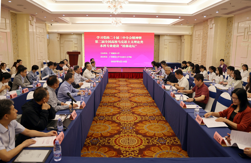 为了进一步推进公司思想政治教育本科专业建设,加强高校马克思主义理论类本科专业建设经验交流。2025年5月10日,曾令辉经理应邀参加由广西师范大学williamhill承办的“学习党的二十届三中全会精神暨第二届全国高校马克思主义理论类本科专业建设‘桂林论坛’研讨会”,会议旨在深入学习贯彻落实党的二十届三中全会精神和习近平总书记对新时代马克思主义理论研究和建设工程的重要指示,落实立德树人根本任务,推动新时代马克思主义理论类本科专业高质量发展。来自西安交通大学、兰州大学、中山大学、williamhill官网等共19个单位和高校的40多名专家学者和青年学子参会。