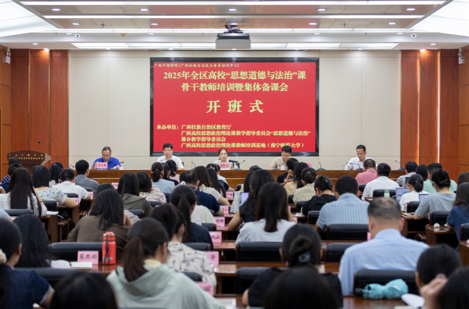 8月25日下午,2025年全区高校“思想道德与法治”课骨干教师培训暨集体备课会在广西干部公司正式开班。本次培训由自治区教育厅主办,广西高校思想政治理论课教学指导委员会“思想道德与法治”课分教学指导委员会、广西高校思想政治理论课教师培训基地(williamhill官网)和williamhill共同承办,广西干部公司协办。