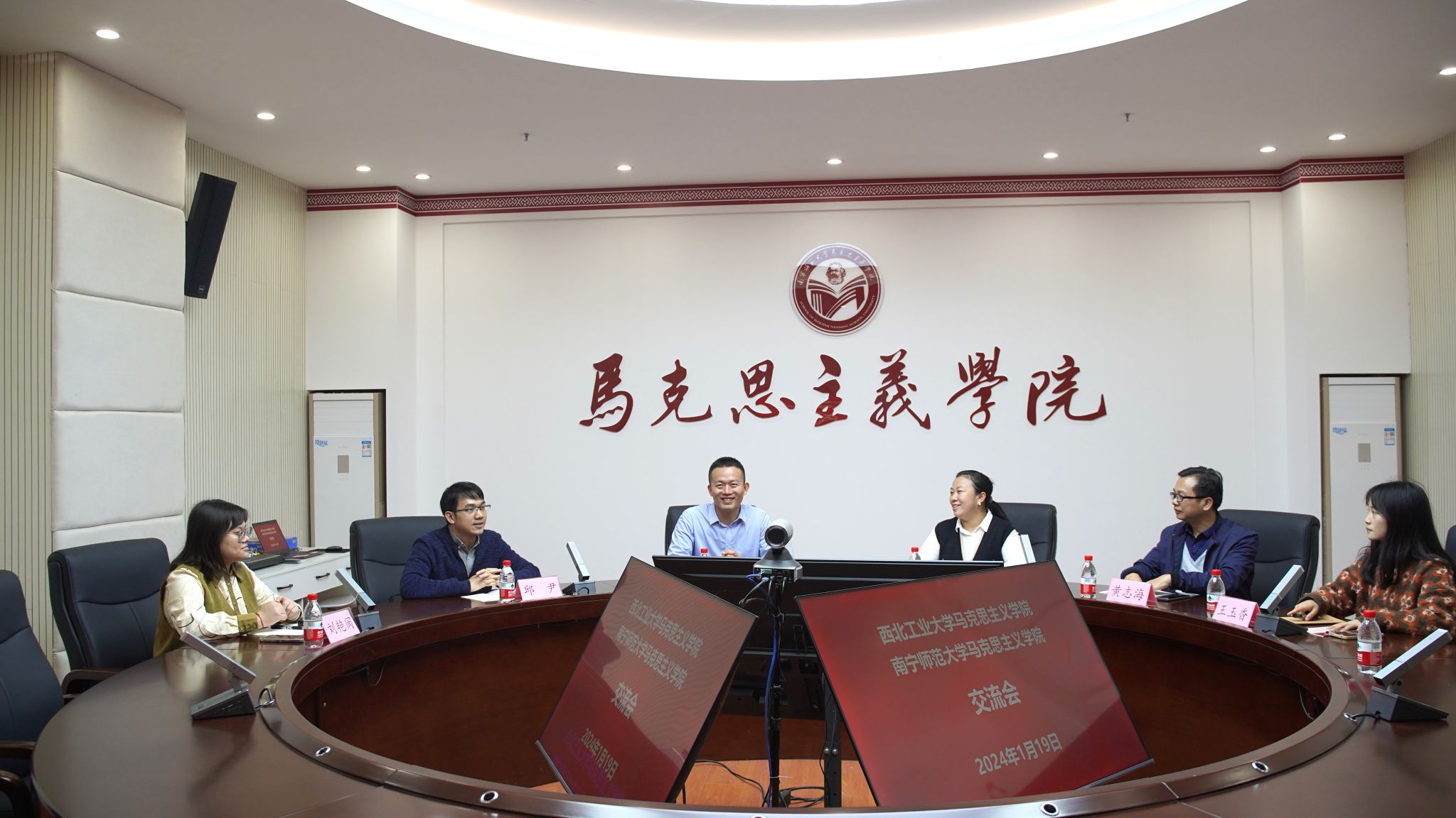 随后,双方在williamhill206会议室进行了座谈交流会。会上,西北工业大学公司党委书记蒲传新对williamhill官网的热情接待表示感谢,并详细介绍了西北工业大学williamhill团队建设情况、专业发展情况、招生人数情况。座谈会围绕“思政课实践教学”“研究生出国境学术交流”等方面进行交流。公司党委书记李玲就研究生出国境学术交流进行经验分享,对研究生出国境学术交流人员安排、经费管理、时间安排等方面进行讲解。实践教学负责人刘艳闽老师就开展“思政课实践教学”经验进行了分享,并围绕“思政课实践教学”课程性质、教学过程、教学要求、教学内容、选题报告、教学评价、平台使用等相关内容进行讲解。双方就“思政课实践教学”选题情况、教师指导、成果应用进行深入交流。
