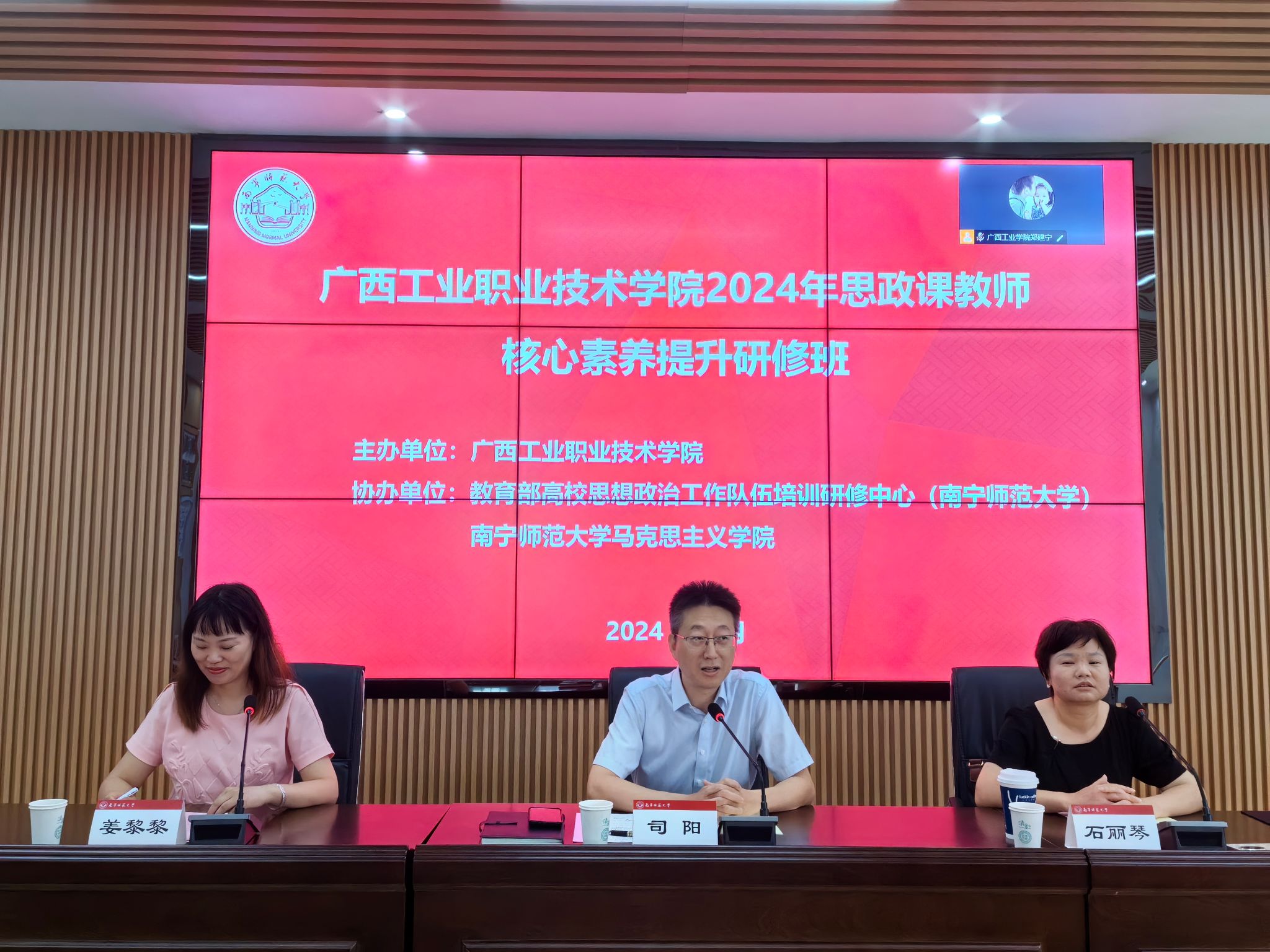 2024年5月31日,由广西工业职业技术公司主办,教育部高校思想政治工作队伍培训研修中心(williamhill官网)及williamhill承办的广西工业职业技术公司2024年思政课教师核心素养提升研修班在南宁顺利举行开班仪式。来自广西工业职业技术公司43名思想政治理论课教师参加培训。广西工业职业技术公司williamhill经理司阳副教授、williamhill副经理石丽琴教授及williamhill官网姜黎黎老师出席了开班仪式。