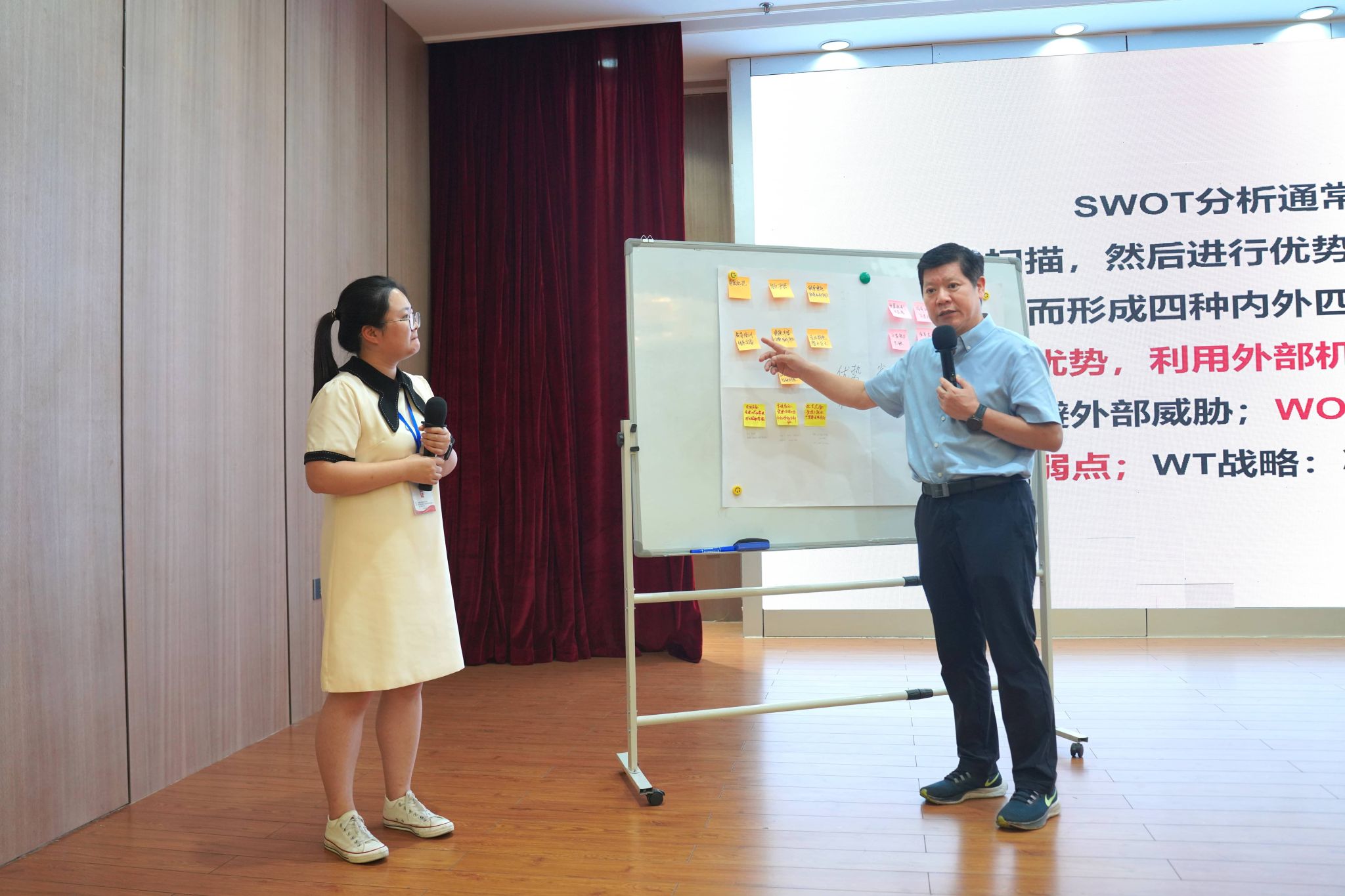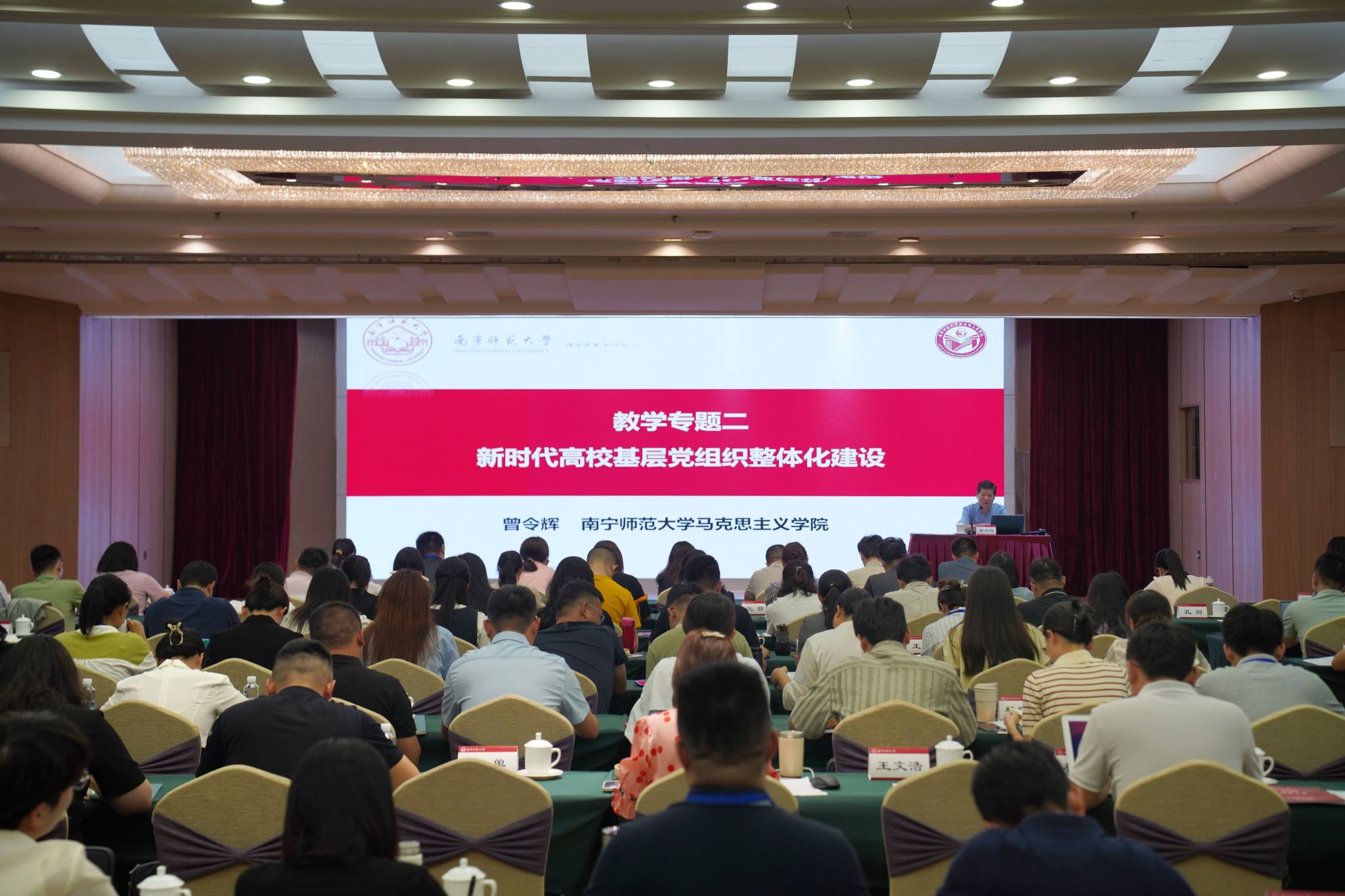 开班仪式结束后,南京师范大学williamhill经理、教育部思想政治工作队伍培训研修中心特聘专家王刚教授以《学习贯彻习近平文化思想》为题作第一专题报告。王教授从形成条件、主要内容和理论体系、蕴含的辩证逻辑、原创性贡献、重要意义五个方面深入阐释了习近平文化思想,深化了学员们对党的创新理论的认识。下午,williamhill经理、教育部思想政治工作队伍培训研修中心(williamhill官网)副主任、教育部思想政治工作队伍培训研修中心特聘专家曾令辉教授以《高校基层党组织整体化建设》为题作第二专题报告。曾教授以其丰富的辅导员经历和经验,聚焦新时代高校基层党建的主题,从新时代高校落实立德树人根本任务和为党育人、为国育才的使命,全面分析了新时代育人新要求和高校基层党建新任务,运用SWOT分析方法,探讨了高校基层党组织建设的内部优势与劣势、外部机遇与挑战等因素,提出了高校基层党组织整体化建设总体要求、主要原则和方法策略。
