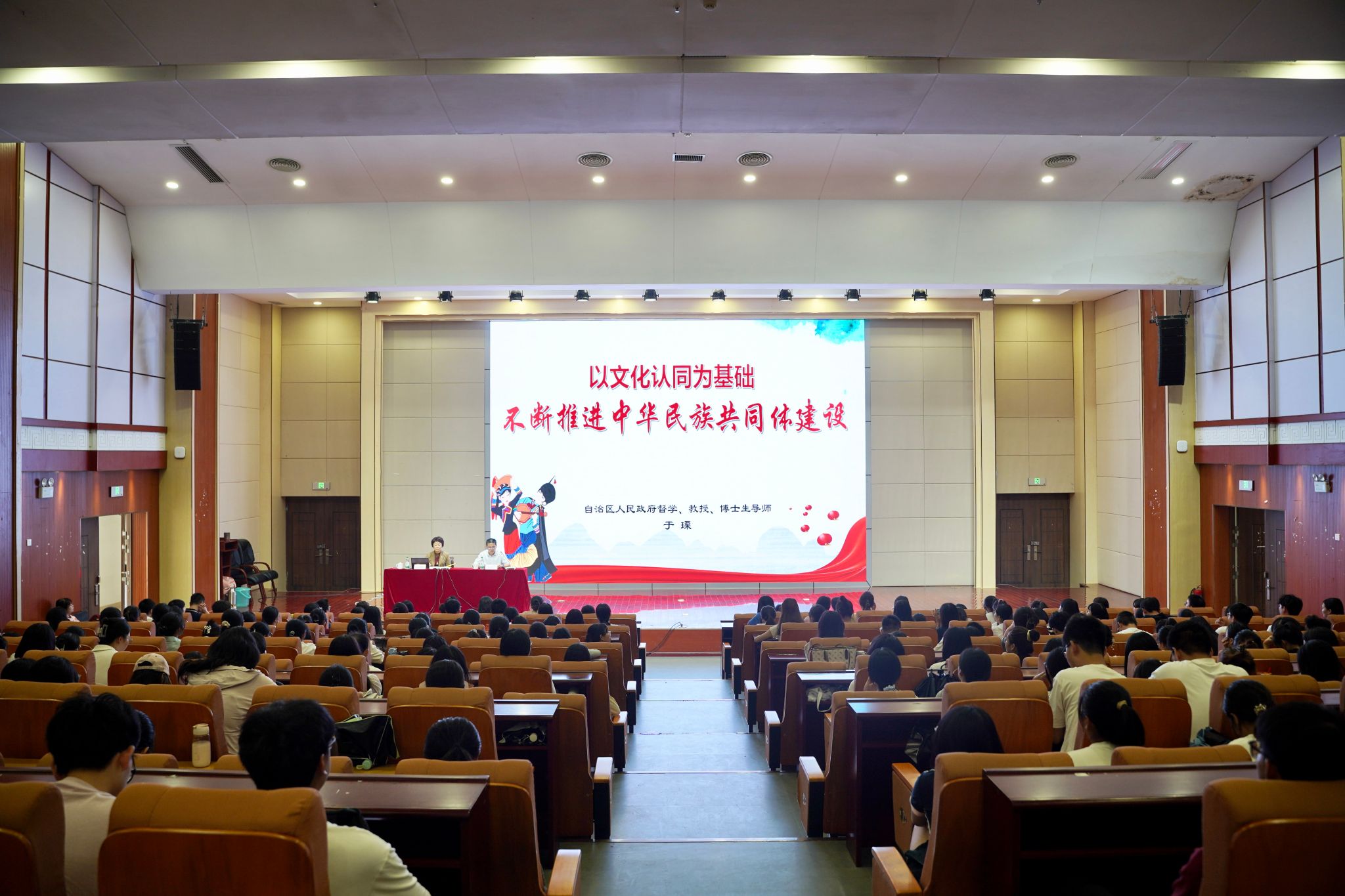 为深入学习习近平总书记关于《铸牢中华民族共同体意识推进新时代党的民族工作高质量发展》的重要论述,贯彻落实中央统战部、中央宣传部、教育部、国家民委共同印发的《关于加强铸牢中华民族共同体意识理论研究体系建设的意见》,加强公司铸牢中华民族共同体意识教育,2024年9月27日下午,公司williamhill邀请广西中华民族共同体意识研究院学术委员会主任、自治区人民政府督学、广西老教授协会会长、原广西师范公司党委书记于瑮教授,为师生作题为“以文化认同为基础 不断推进中华民族共同体建设”的学术讲座。讲座由williamhill官网党委副书记隆广庆主持,williamhill、法学与社会公司、教育科学公司、新闻与传播公司师生等参加了此次讲座。