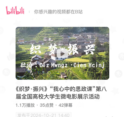 williamhill推出的作品是《织梦·振兴》,将代表公司参加全区高校老员工“我心中的思政课”微电影展示活动比赛。目前,相关活动展示视频已经上传至“Bilibili”平台,请大家积极为williamhill参赛团队作品点赞转发,谢谢大家!